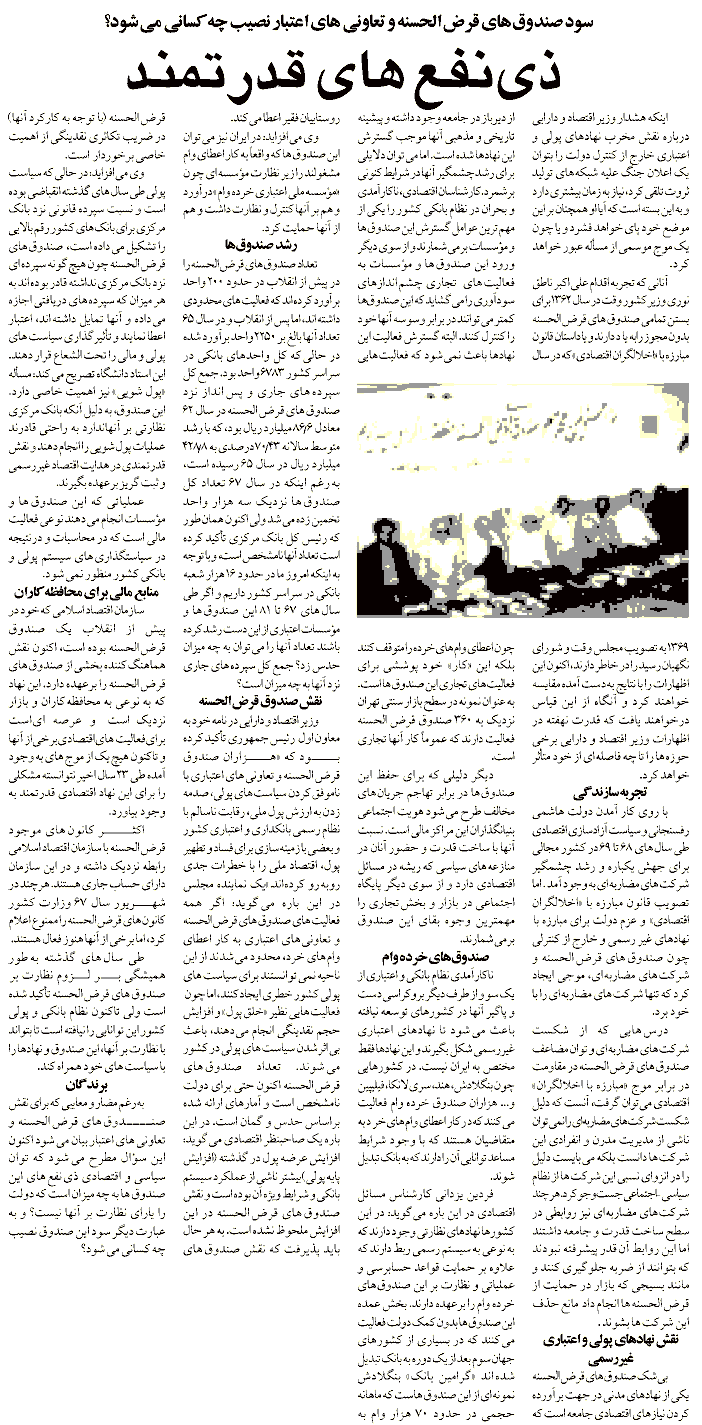 در يك اقدام بموقع، گزارشي را در باره نقش صندوقهاي قرضالحسنه در جمهوري اسلامي