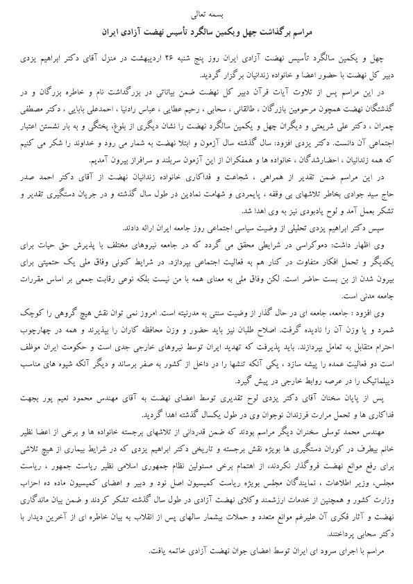 مراسم چهل و يكمين سالگرد تاسيس نهضت آزادی ايران