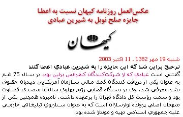 برنامه عمل برنده صلح نوبل: ( شرين عبادی)