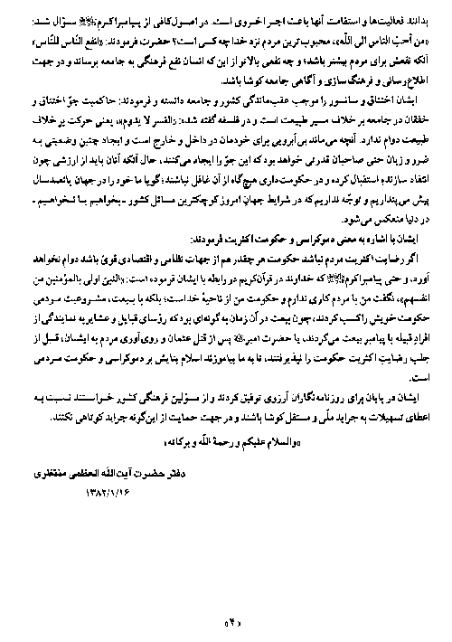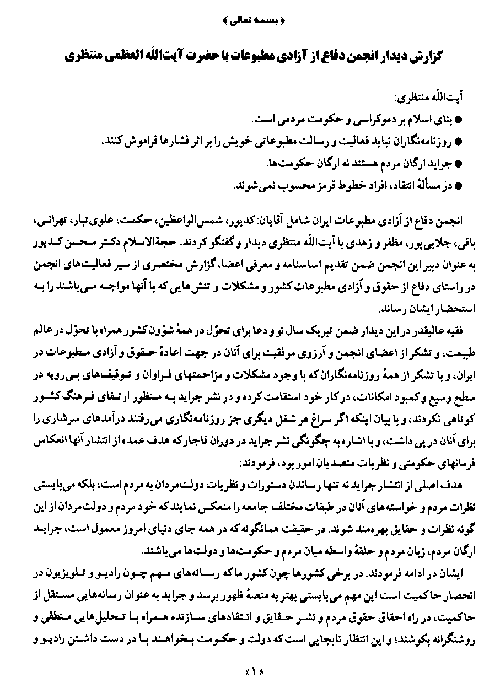 سخنرانیآيت اللهمنتظری در ديدار با طرفداران آزادی مطبوعات