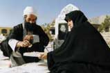 خانم هايی با چادر مشكی در گوشه ای از سالن اينگونه
