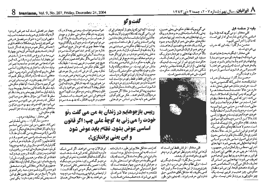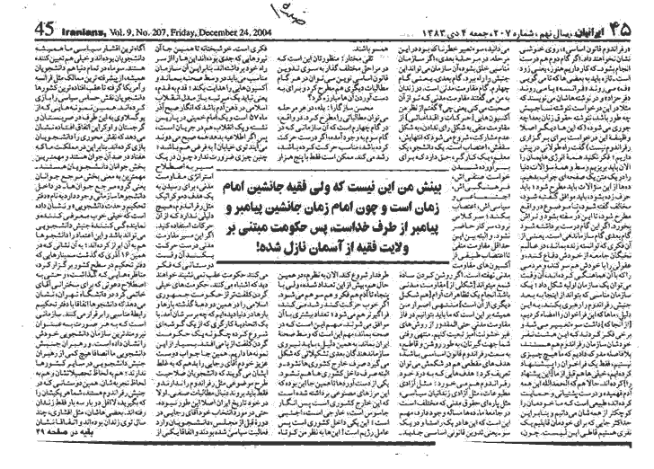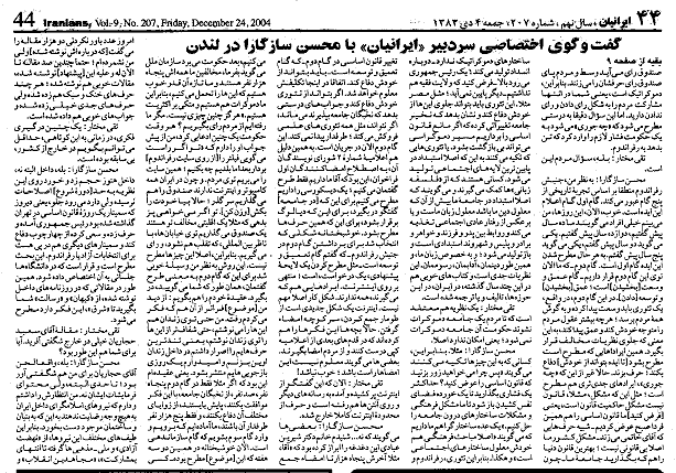 در روزنامه ايرانيان چاپ واشنگتن منتشر شده و قسمت دوم آن را
