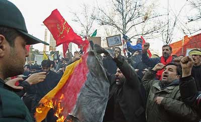 روزنامه زیر نفوذ شهرداری(همشهری) نقش تشویق کننده تظاهرات تخریبی تهران را داشت.تظاهرات در تهران و دمشق با تظاهراتی که در دیگر کشورهای اسلامی برپا شد متفاوت بود. در این دو کشور دولت و حکومت سازمانده و هدایت کننده تخریب ها و خشونت هابودند. (تصویربالا چاشنی های درونی بمب است.)