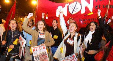 جشن جوانان در پاريس با پلاكارد روزنامه‌های رد و اومانيته