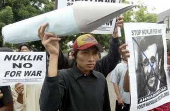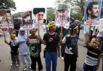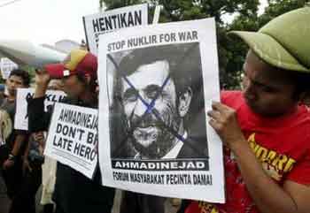 تظاهرات ضدجنگ عليه محمود احمدی نژاد در اندونزی"مونتاژ شده" و