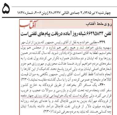 و اطلاع رهبران جمهوری اسلامی از پيام محرمانه او