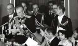 شاه 3 بار قانون اساسی را تغير داد و بالاخره گفت: "من برای مملكت تصميم می گيرم نه ديگران. سياست ايران را من ديكته می كنم.". شاه از آزادی بيان و آزادی مطبوعات نفرت داشت و معتقد بود بيش از هر كس و هر مقامی می داند و اطلاعات دارد، پس بهتراز هر شخص ديگری می تواند تصميم بگيرد. به توصيه تورج فرازمند، وزارت دربار و نخست وزيری بخشنامه ای صادر كردند كه از اين پس كسی حق ندارد شاه و ملكه را بنام های "شخص اول مملكت" و يا "بانوی اول" بنامد زيرا اگر شخص اول بناميم مفهوم اين عبارت اينست كه شخص دومی نيز بايد باشد، اما در ايران شخص دومی وجود ندارد و فقط يك شخص وجود دارد و آن هم "ذات اقدس همايونی، آريامهر" است. كسی نمی توانست از شاه انتقاد كند. هيچ مقامی حتی مجلس شورای ملی كه مرجع قانگذاری است نمی توانست بدون اجازه شاه قانونی را تصويب كند. هويدا هنگام آوردن قانونی به مجلس تاكيد می كرد كه اين قانون طبق دستور "ذات مقدس همايونی” تقديم می گردد. خواجه نظام الملك در سياست نامه جمله ای دارد: "دشمن خليفه، دشمن پيغمبراست و دشمن پيغمبر دشمن خدا و لذا قتلش واجب" در زمان محمد رضا نيز جريان بر همين منوال بود. شاه در آستانه انقلاب، از سفر استراليا و زلاندنو با قرار داد گوشت و گندم بازگشت اما مسائل بزرگتر از آن بود كه بتوان با نان و گوشت آن را حل كرد! كنفدراسيون دانشجوئی آلت دست انگليس و دربار شده بود |