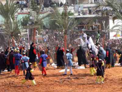 عاشورا در نبتيه جبل عامل - اين سبک عزاداری از لبنان در عصر صفويه به ايران صادر شد. امثال آيت الله خمينی با آن موافقت نداشتند و حتی شخص وی، يکبار، پیش از انقلاب از مردم خواست بجای زدن به سرو روی خود در عزاداری های ماه محرم مشت را برای حکومت بلند کنند. |