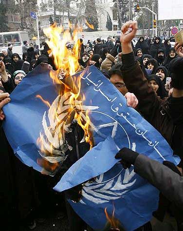 جمع شده و پرچم سازمان ملل را آتش زدند.