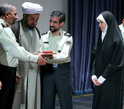 سردار اسماعيل احمدی مقدم باجناق احمدی نژاد و فرمانده نيروی انتظامی روز سوم مرداد ماه و در اوج انتقادهائی که از هر سو نسبت به برخوردهای خيابانی نيروی انتظامی با زنان و دختران جاری بود، طی مراسمی مسئله برخورد با اوباش و اراذل را جلو انداخته و به اين بهانه از يک خبرنگار در برابر همه خبرنگاران و روزنامه های منتقد رفتارهای اخير نيروی انتظامی تقدير کرد. دراين مراسم "شهرزاد بابا عليپور"، هم بعنوان خبرنگار برتر و هم بعنوان يک مدل برتر پوشش اسلامی با همان لبخند و نگاهی که در عکس می بينيد حضور يافت و تقديرنامه اش را گرفت. البته دراين عکس تقدير نامه را دارند به فرمانده نيروی انتظامی می دهند، اما بعدا فرمانده تقديرنامه را به شهرزاد می دهد. ايشان خبرنگار خبرگزاری ايسناست و عنوان گزارشش – نه چشم و غمزه اش- که آنقدر قند در دل نيروی انتظامی آب کرده اين بوده «چماقی که مردم را نشانه رفته بود با اقتدار بر سر گنده لاتها فرود آمد»