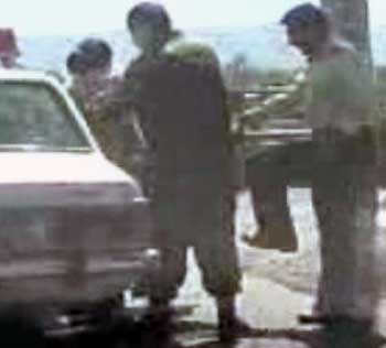 شکستن پای طرف با چماق و سپس دستگيری وی