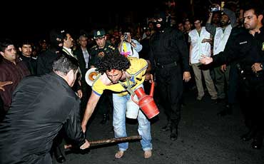 کنيد. کتک، آويزان کردن آفتابه به گردن و