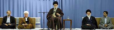 علی خامنه ای که حداقل بموجب عکس هائی که از این دیدار منتشر شده حال و روز مناسبی ندارد، در بخش دیگری از سخنرانی خود، درحالیکه رفسنجانی در کنارش نشسته بود، باز غیر مستقیم خود و احمدی نژاد را دارای آن اراده کارآمدی ارزیابی کرد که اگر نبود، طرح های دهه های اخیر به نتیجه نمی رسید و رفسنجانی و خاتمی بیهوده می گویند در 16 سال ریاست جمهوری آنها پایه طرح هائی مانند انرژی اتمی ریخته شده است. بخوانید: