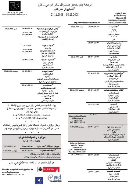 برنامه پانزدهمین فستیوال تئاتر ایرانی- کلن
