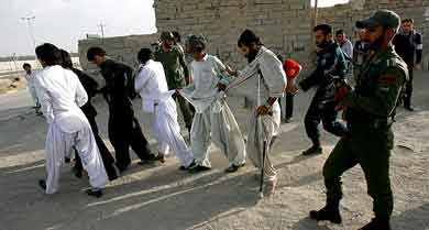 طرح امنیت اجتماعی را در زاهدان نیز به اجرا گذاشتند. این دو تصویر از یورش به خانه محقر و فقر زده مردم روستاهای سیستان و بلوچستان برای برقرار امنیت اجتماعی است! آن که به دامن مادر و خواهرش پناه برده کودک و خواهر آن مردانی است که به صف کرده و به جرم داشتن مواد مخدر به صف کرده و می برند تا امنیت اجتماعی را تامین کنند. امنیتی که 30 سال است تامین نشده با یافتن چاره ای برای فقر و بی کاری و بی مسکنی مردم تامین می شود نه با بردن مردان به زندان و بی سرپرست گذاشتن خانواده ها. مملکتی که روی 60 میلیارد دلار واردات می چرخد و نه تولید و کارخانه و کار، مواد مخدر هم یکی از واردات و صادراتش می تواند باشد.