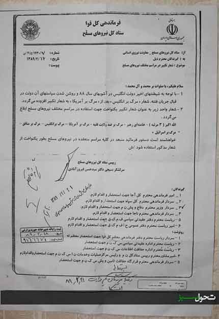 بخشنامه ابلاغ شعار جدید، با امضای سرلشگر فیروزآبادی؛ حجت را بر مراجع نیز باید تمام کرده باشد تا بدانند سرنیزه سپاه تا پشت گردنشان رسیده است.