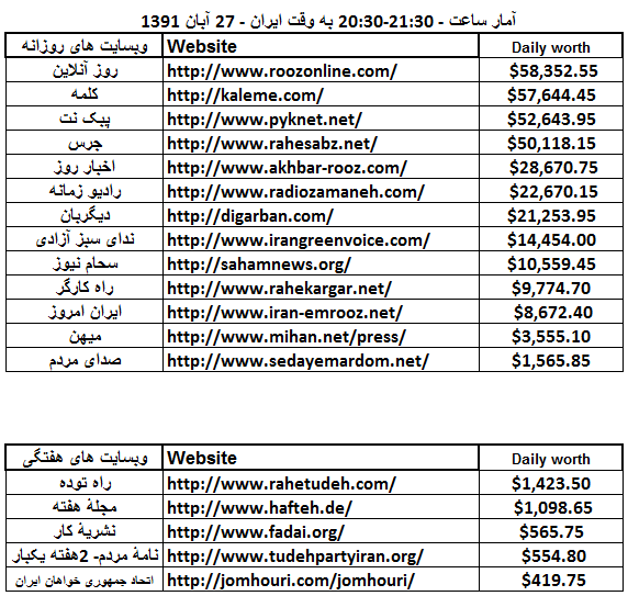 به محض بازگشت از آمار 27 آبان (از روی