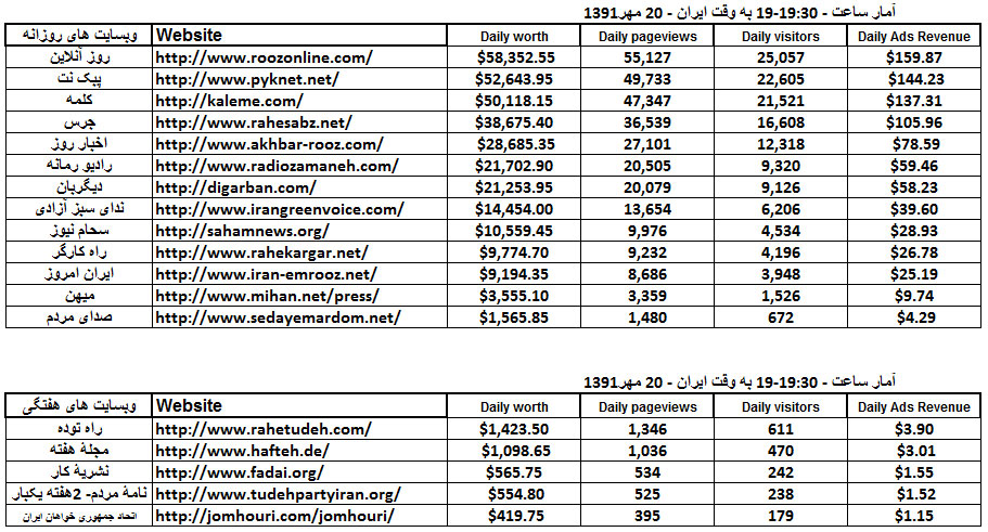 بموجب وعده ای که داده بودیم، آمار این هفته وبسایت های روزانه