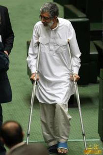 این عکس از روز رای گیری برای انتخاب رئیس موقت مجلس نهم منتشر شده است. حداد عادل پدر زن آقا مجتبی است که با پای شکسته آمد به مجلس تا در انتخابات ریاست آن شرکت کند. شرکت کرد و باخت. همه میگویند: ای کاش پام شکسته بود و فلان جا نرفته بودم! حداد عادل با پای شکسته رفت و لابد پیش خودش می گوید: ای کاش دو پایم شکسته بود و آن روز نرفته  و به علی لاریجانی نباخته بودم.