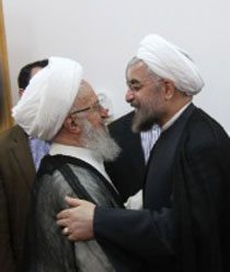 حسن روحانی در سفر به قم با مصباح یزدی ملاقات نکرد اما به دفتر مجلس خبرگان رهبری در قم رفت و با نایب رئیس و جمعی از اعضای این مجلس که خود نیز عضو آنست دیدار کرد.  پیام نویسان این گزارش سفر، بارها از آیت الله منتظری یاد کرده و افسوس خورده اند که وی در قید حیات نبوده تا روحانی را پیروز انتخابات ببیند! همچنین، کاربران و پیام نویسان از دیدار روحانی با آیت الله موسوی اردبیلی نیز بسیار تجلیل کرده اند. موسوی اردبیلی از جمله اعضای ترکیب اولیه شورای انقلاب بود که بعدها، پس از کشته شدن آیت الله بهشتی در زمان آقای خمینی رئیس قوه قضائیه که آن زمان "شورایعالی قضائی" نام داشت شد. پس از درگذشت آقای خمینی در پیشنهاد شورائی شدن ولایت فقیه در مجلس خبرگانی که برای تعیین جانشین آقای خمینی تشکیل شده بود، نام موسوی اردبیلی در کنار هاشمی، خامنه ای، احمد خمینی و فرد پنجمی که تاکنون نام وی فاش نشده اما گفته می شود آیت الله "گلپایگانی" بوده  قرار داشت. آن پیشنهاد با اختلاف رای بسیار اندک به نتیجه نرسید و خامنه ای با شهادت هاشمی مبنی بر تائید وی توسط آقای خمینی برای رهبری، بعنوان رهبر جمهوری اسلامی انتخاب شد. موسوی اردبیلی که در سالهای آستانه انقلاب 57 امام جمعه مسجد "انصار" در کنار دانشگاه تهران بود و پس از انقلاب امام جمعه موقت تهران نیز شد، پس از در گذشت آقای خمینی و به رهبری رسیدن آقای خامنه ای، بتدریج صحنه سیاسی را ترک  کرد و در قم مستقر شد و با قدرت گرفتن روحانیون مسئله دار با آقای خمینی ( افرادی نظیر جنتی و یزدی و آذری قمی و...) منزوی شد. درجریان کودتای انتخاباتی 88 با آن که قادر به راه رفتن نبود و با ویلچر حرکت می کرد، از قم به تهران آمده و به دیدار خامنه ای رفت و از او خواست زندانیان این کودتا را آزاد کند و به حصر موسوی و کروبی خاتمه بدهد و بیش از این جامعه را در التهاب فرو نبرد. این دیدار بی نتیجه ماند.