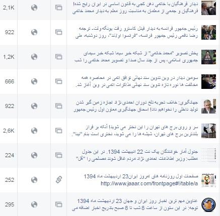جدول آمار خوانندگان پیک نت 23 ادیبهشت 1394