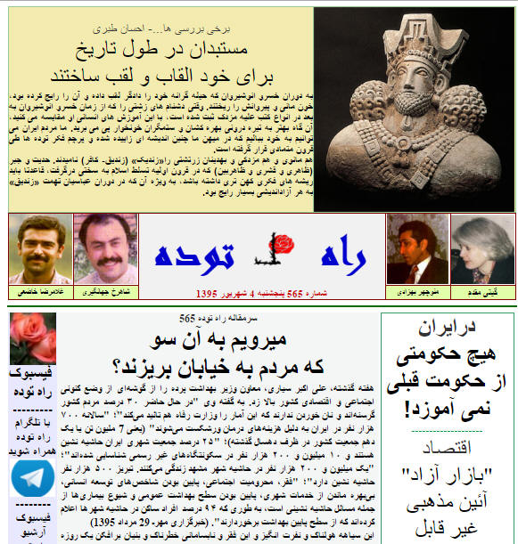 هفته نامه راه توده – شماره 565 (4 شهریور ماه 1395)- منتشر شد. علاوه بر سایت راه توده، شما مطالب این شماره راه توده را نیز مانند شماره های گذشته می توانید روی کانال تلگرام و فیسبوک این نشریه مطالعه کنید.