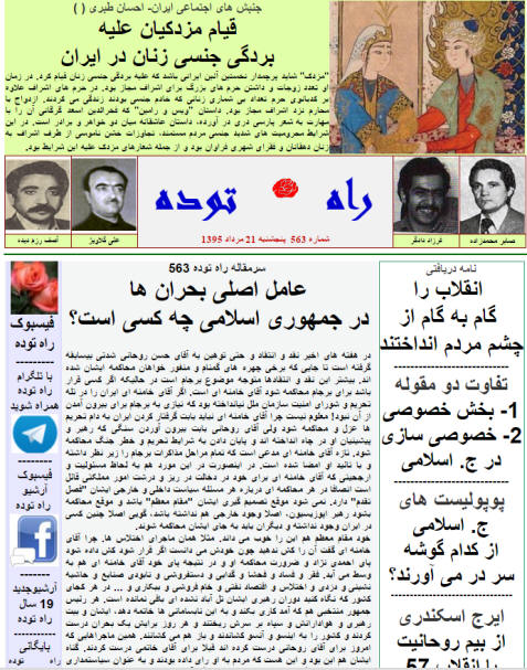 هفته نامه راه توده (شماره 563- پنجشنبه 21 مرداد 1395) منتشر شد و مطالب آن علاوه بر سایت این نشریه، روی فیسبوک و کانال تلگرام آن قرار گرفت. دراین شماره نیز بخش دیگری از کتاب احساس طبری درباره جنبش های اجتماعی ایران را می خوانید که اختصاص به موقعیت زنان در دربار ساسانیان و جنبش مزدک دارد که بانک آزادی زنان را بر آورد. مطلب دنباله دار بعدی، ادامه کتاب تحقیق ارزنده علی گلاویژه درباره مناسبات سرمایه داری و مالکیت زمین در کردستان است.