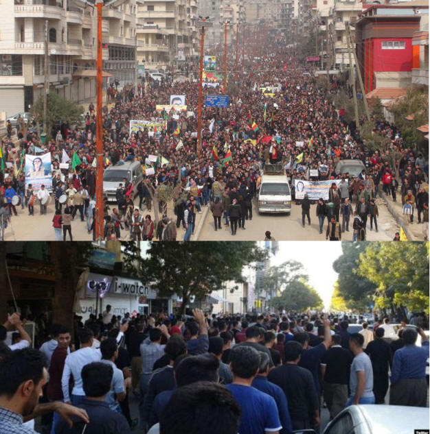 از جمله در شهر "عفرین" که تصویری از این تظاهرات را می بینید.