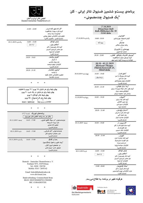 بیست و ششمین فستیوال تئاتر ایرانی از 27 اکتبر (یکشنبه آینده) در شهر کلن آغاز می شود. فستیوالی که بنیانگذار آن زنده یاد "مجید فلاح زاده" بود و پس از درگذشت ناگهانی و غافلگیر کننده وی، همسرش جای خالی او را هم پر کرد و پرچم این فستیوال را برافراشته نگهداشت. کاری دشوار در مهاجرت و به دور از ایران اما همسو و گام به گام با تئاتر در ایران. برای آگاهی از برنامه های این فستیوال مراجعه کنید به جدول برنامه های آن که در همین شماره پیک نت منتشر شده است.