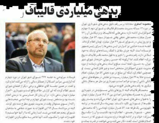 قالیباف این رقم را قبول نکرد و گفت بدهی شهرداری دوره قالیباف