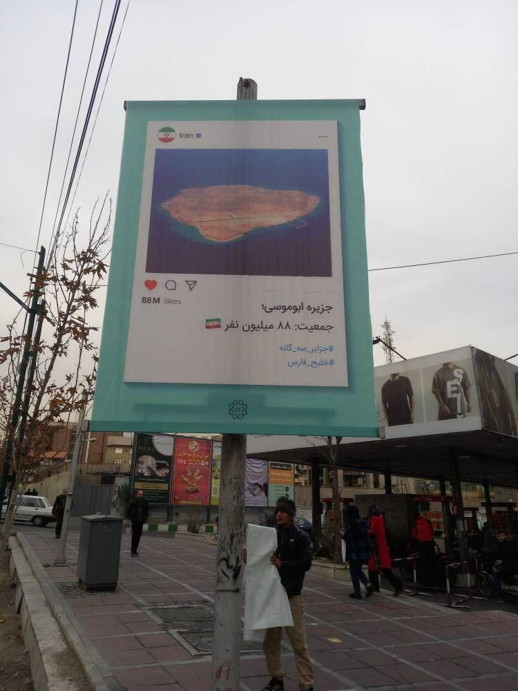 روز گذشته، بنرهایی با عنوان "جزیره ابوموسی؛ جمعیت ۸۸