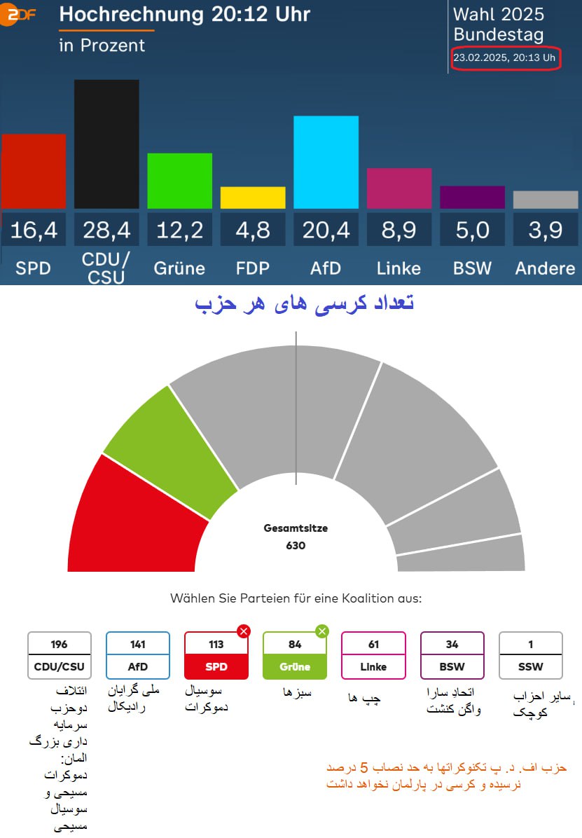 آلمان بدست آورد ۱۴۱ کرسی پارلمانی خواهد داشت.