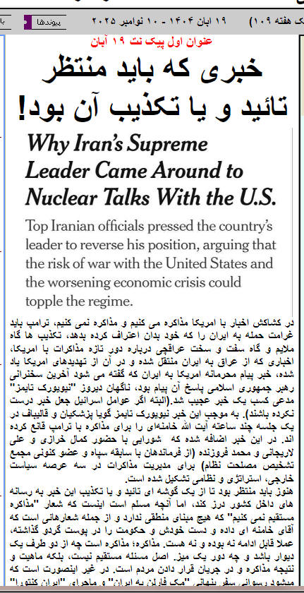 مذاکرات مستقیم و موافقت رهبر با آن را می رساند. بویژه که
